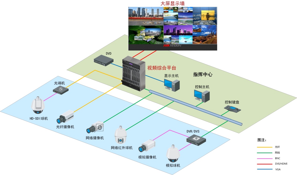 公安指揮中心是保障公共安全和處置突發(fā)公共事件、重大事件、交通應急管理的指揮調度場(chǎng)所,在指揮中心大信息量、高數據流以及多路監控業(yè)務(wù)需求的情況下,大屏顯示控制系統能夠靈活方便地提供一個(gè)內容豐富、準確高效的信息圖像顯示平臺,一個(gè)貼近實(shí)戰需要的綜合信息顯示界面,使指揮人員能及時(shí)提出預案、方案和決策意見(jiàn),確保指揮系統的決策、命令能夠穩妥迅速地傳達執行并反饋,從而保證整個(gè)指揮系統具有聯(lián)動(dòng)性、高效性、完整性。 針對指揮中心對大屏幕顯示控制系統的需求特點(diǎn),以及電視墻幕技術(shù)的發(fā)展,??低曇劳凶陨韽妱诺难邪l(fā)實(shí)力,推出業(yè)內領(lǐng)先的指揮中心顯示控制解決方案,為用戶(hù)提供一套技術(shù)先進(jìn)、功能完善、性能穩定、安全可靠、操作方便、擴展方便、性?xún)r(jià)比高的指揮中心顯示控制系統,使指揮中心對突發(fā)事件現場(chǎng)情況和處置進(jìn)程能夠實(shí)時(shí)掌握和控制,實(shí)現高效可靠指揮。 (二)解決方案